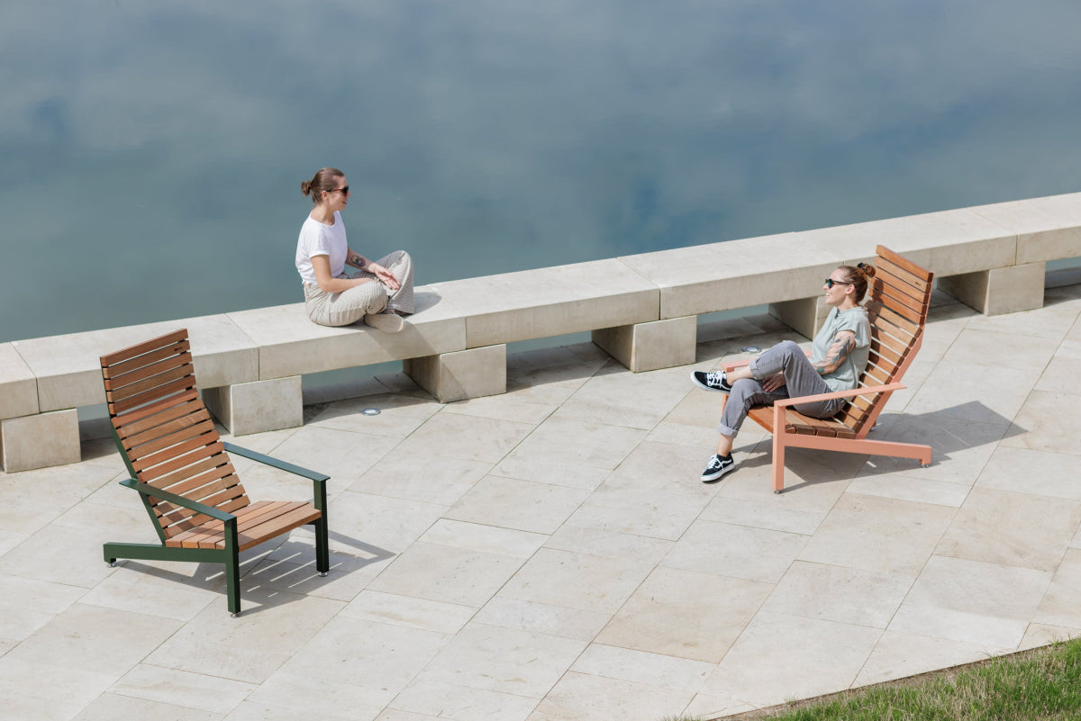 Tuolin pinta-asennettava rakenne seisoo vakaasti vilkasliikenteisilläkin alueilla. Lämmin puupinta ja pelkistetty teräsrakenne tekevät siitä erinomaisen valinnan puistoihin, julkisiin puutarhoihin tai vaikkapa koulupihoille ja hotelliterasseille.