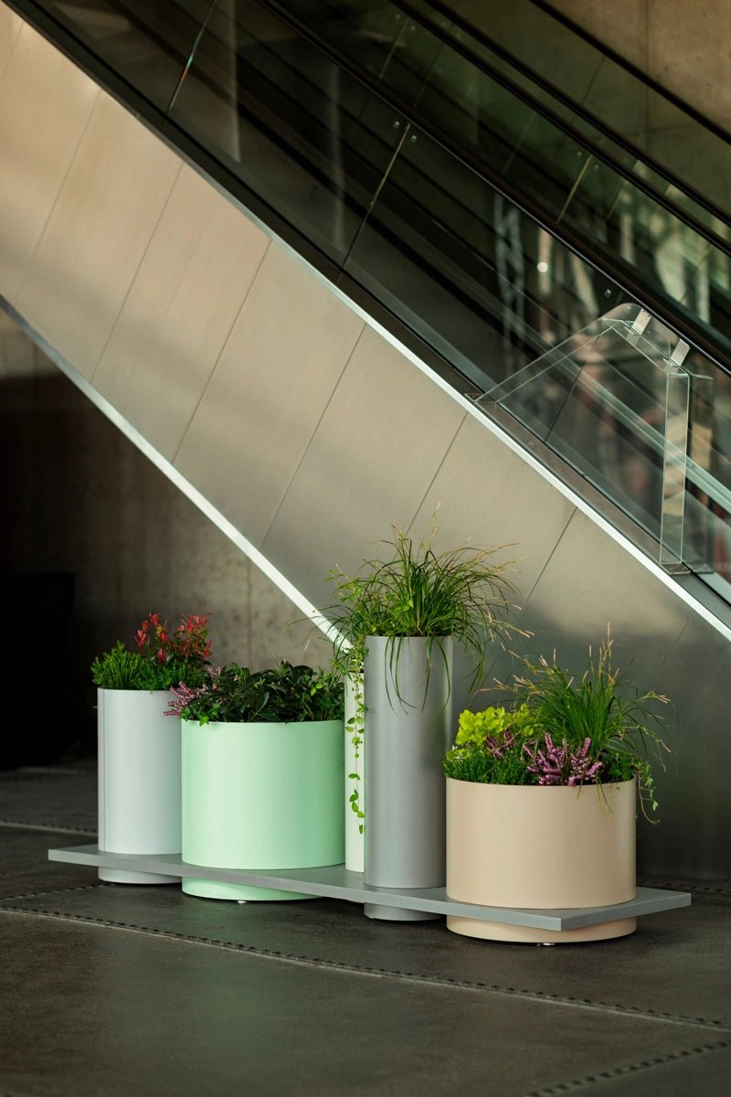 Polys POL555 on laadukas ja monipuolinen istutusallas, joka koostuu viidestä eri kokoisesta istutusastiasta (24 l, 53 l, 12 l, 12 l, 53 l), yhteensä 199 litraa istutustilaa. Jauhemaalatusta alumiinista valmistetut altaat on sijoitettu tukevan sinkityn ja jauhemaalatun teräsalustan päälle, joka kestää hyvin sääolosuhteet ja käyttöä. Istutusallaskokonaisuus on saatavilla mmcitén RAL-vakioväreissä.