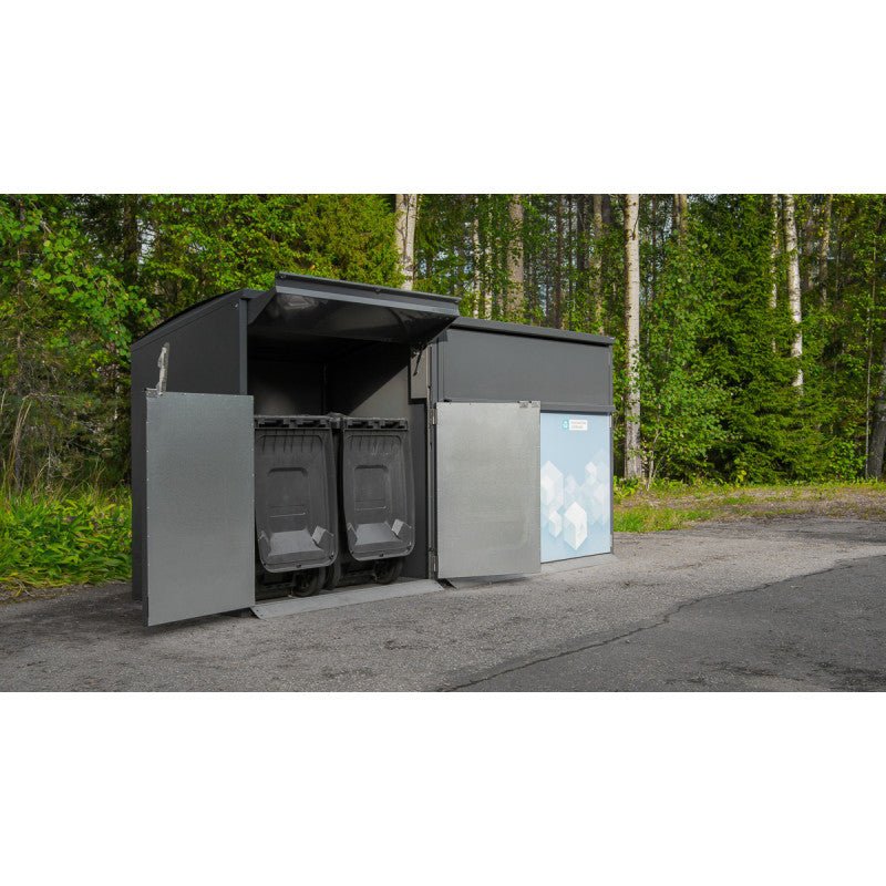 Paloturvallinen Modul Maxi – tilatehokas roskakatos kahdelle 660 litran roska-astialle