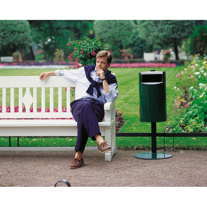 City 30 ja 60 -malleihin suunniteltu laattapylväs. Laattapylväällä roska-astia on vapaasti seisova, jalusta voidaan kiinnittää alustaan.