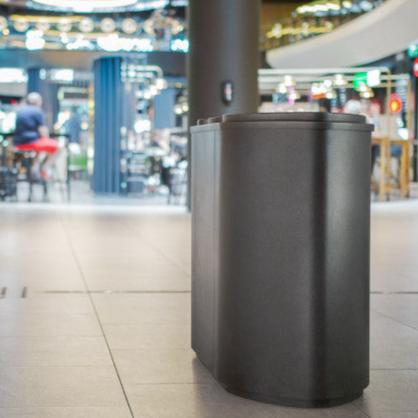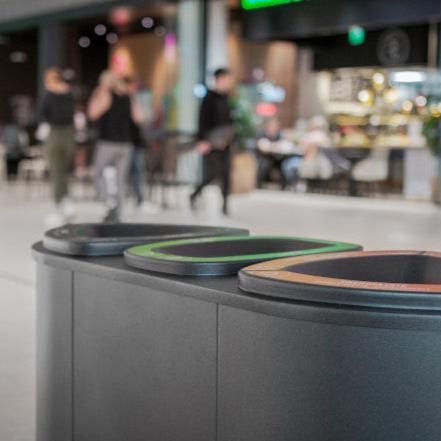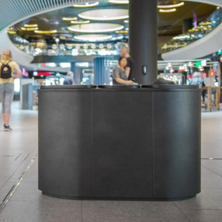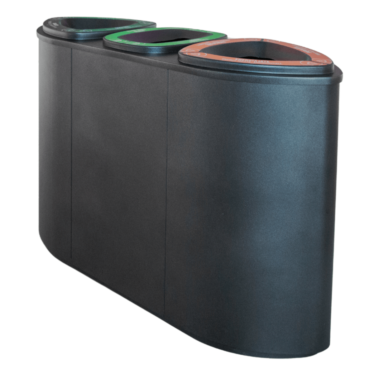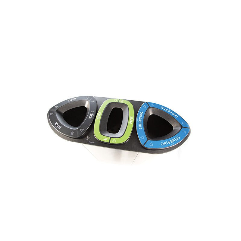 Tyylikäs lajitteluastia mahdollistaa kolmen eri jätelajin keräämisen samanaikaisesti. Täyttöaukkojen erilaiset muodot tekevät jätteiden lajittelusta selkeää ja helppoa. Astia on myös varustettu tulentukahdutusmekanismilla, joka estää tulen hapensaannin ja tukahduttaa alkavan palon.