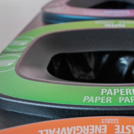 Bermuda on varustettavissa värikkäillä opastarroilla, jotka tekevät jätteiden lajittelusta helppoa ja käyttäjäystävällistä. Lisävarusteena on saatavilla myös pyöreäaukollinen kansi, joka soveltuu erinomaisesti pullojen lajitteluun.