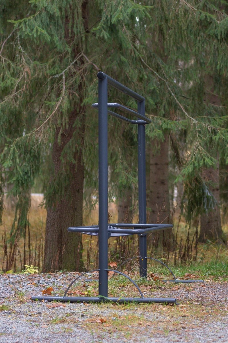 Treo-tamppausteline valmistetaan vahvasta teräksestä, joka varmistaa pitkän käyttöiän ja erinomaisen kestävyyden. Teline jauhepolttomaalataan Lehtovuoren laajan vakiovärivalikoiman sävyissä.