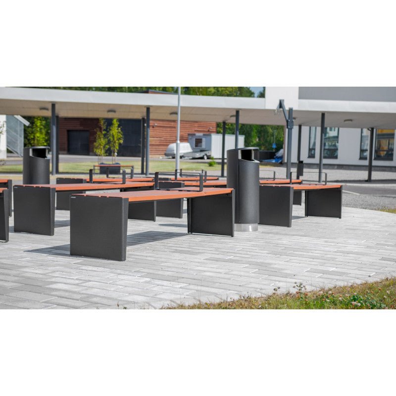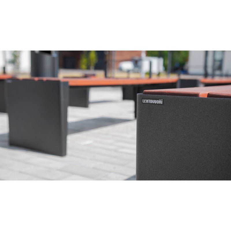 Penkin runko on valmistettu kestävästä sinkkipohjamaalatusta ja jauhepolttomaalatusta galvannealed teräksestä, mikä takaa pitkäikäisyyden ja säänkestävyyden vaativissa olosuhteissa. Puuosat ovat saatavilla kuultokäsiteltyinä tai lämpökäsiteltyinä, mikä tekee penkistä huoltovapaan ja pitkäikäisen ratkaisun ulkokäyttöön.