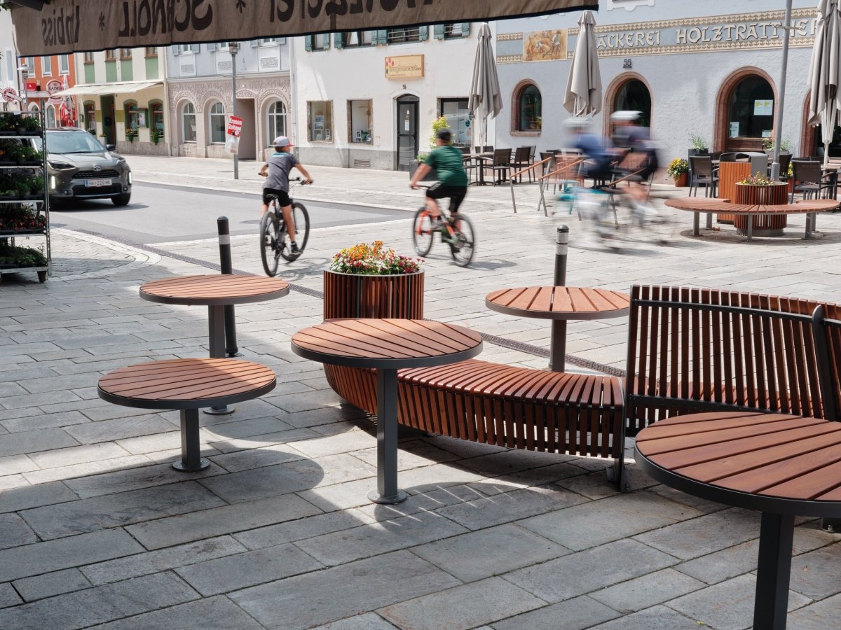 Laatua joka kestää: Pulverimaalattu sinkitty teräs mmcitén RAL-vakioväreissä ja FSC®-sertifioidut jatoba-puulaudat takaavat pitkäikäisyyden.