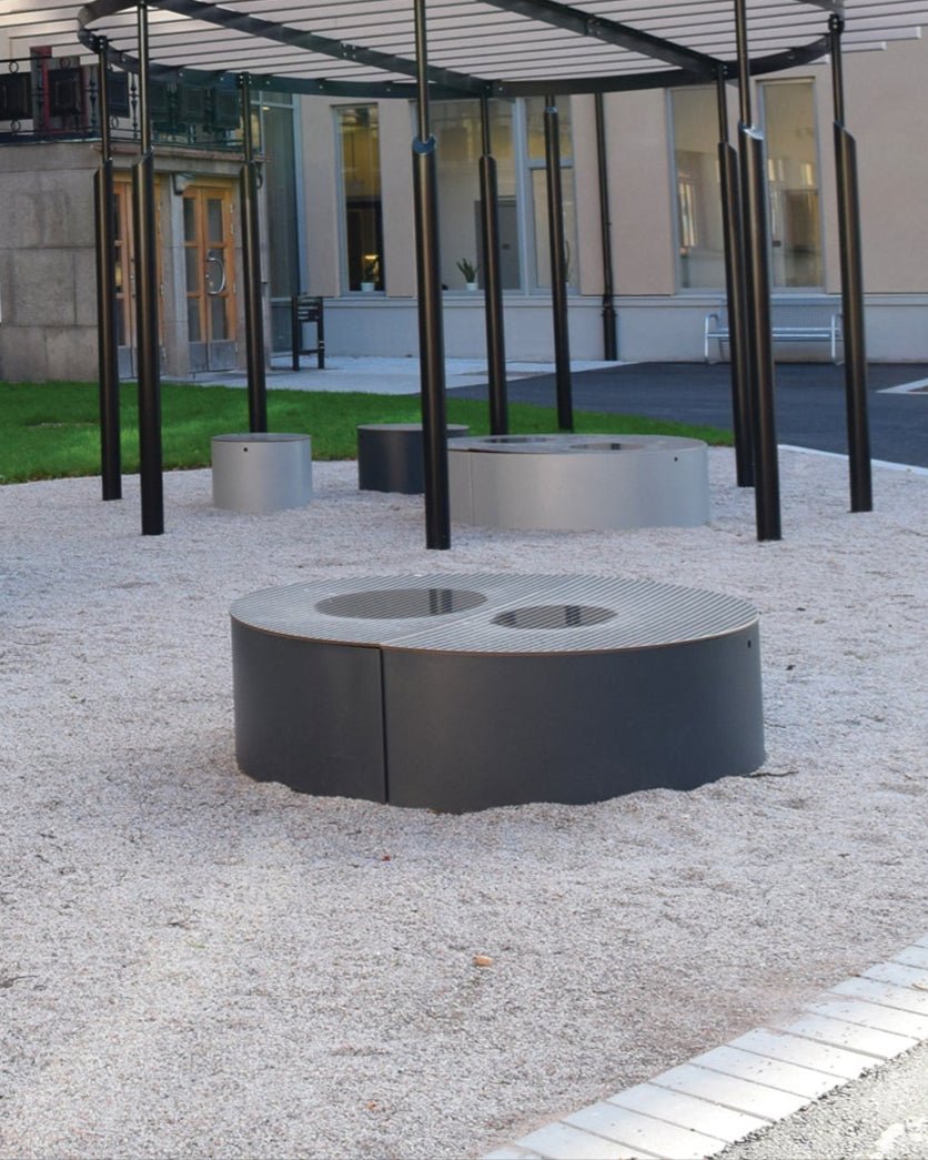 Urban Island UIS250 – pyöreä HPL-istuinelementti kaupunkitilaan