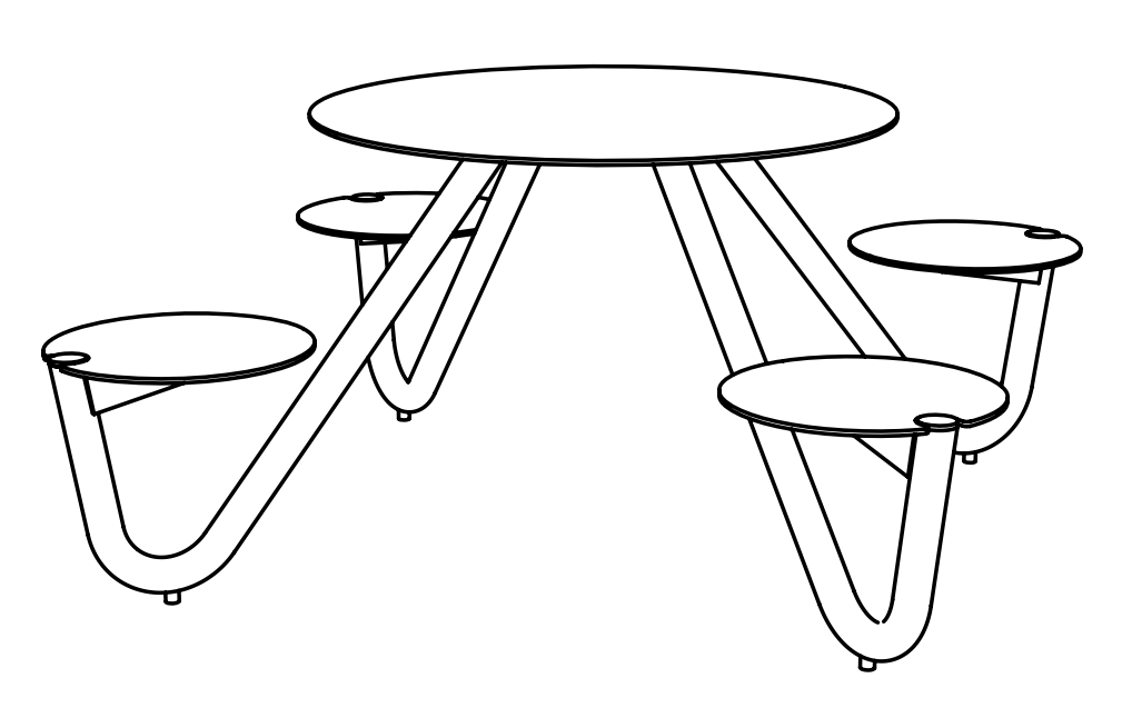 Pinta-asennettava malli kiinnitetään ruuveilla alustaan, mikä tekee siitä erinomaisen ratkaisun julkisiin kohteisiin, joissa tarvitaan vakaa ja turvallinen kaluste. Alumiiniset pöytälevy ja istuimet tekevät kokonaisuudesta kevyen, ruostumattoman ja helposti puhdistettavan. Kuumasinkitty teräsrunko takaa että kokonaisuus kestää aikaa ja käyttöä.