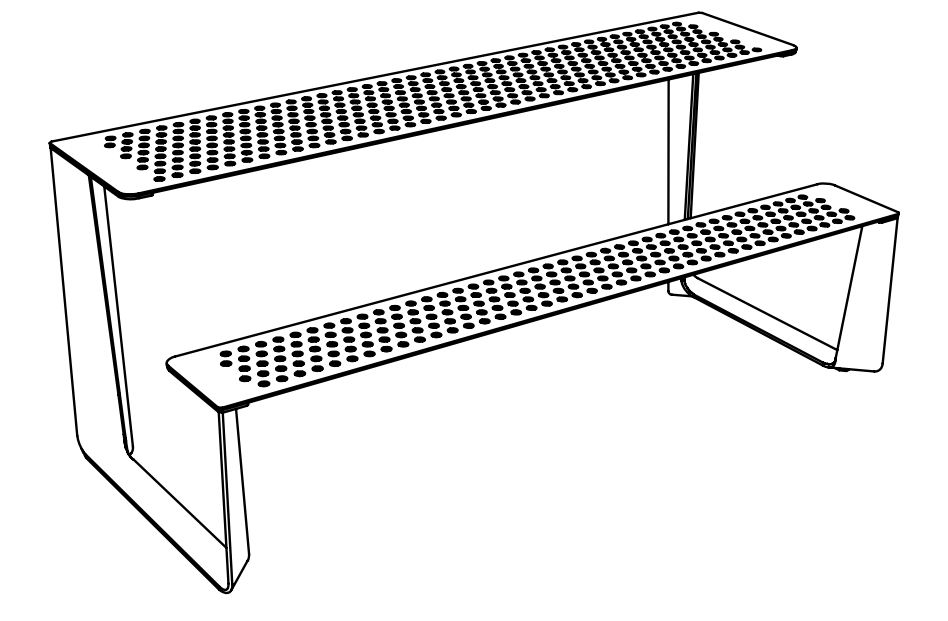 Piknikpöydän runko on sinkittyä ja jauhemaalattua terästä. Teräksisestä reikälevystä valmistetut istuin- ja pöytäpinnat kestävät kovaa käyttöä ja ovat helposti puhdistettavissa. Malli on pinta-asennettava, mikä helpottaa sen siirtelyä ja asennusta erilaisille alustoille.