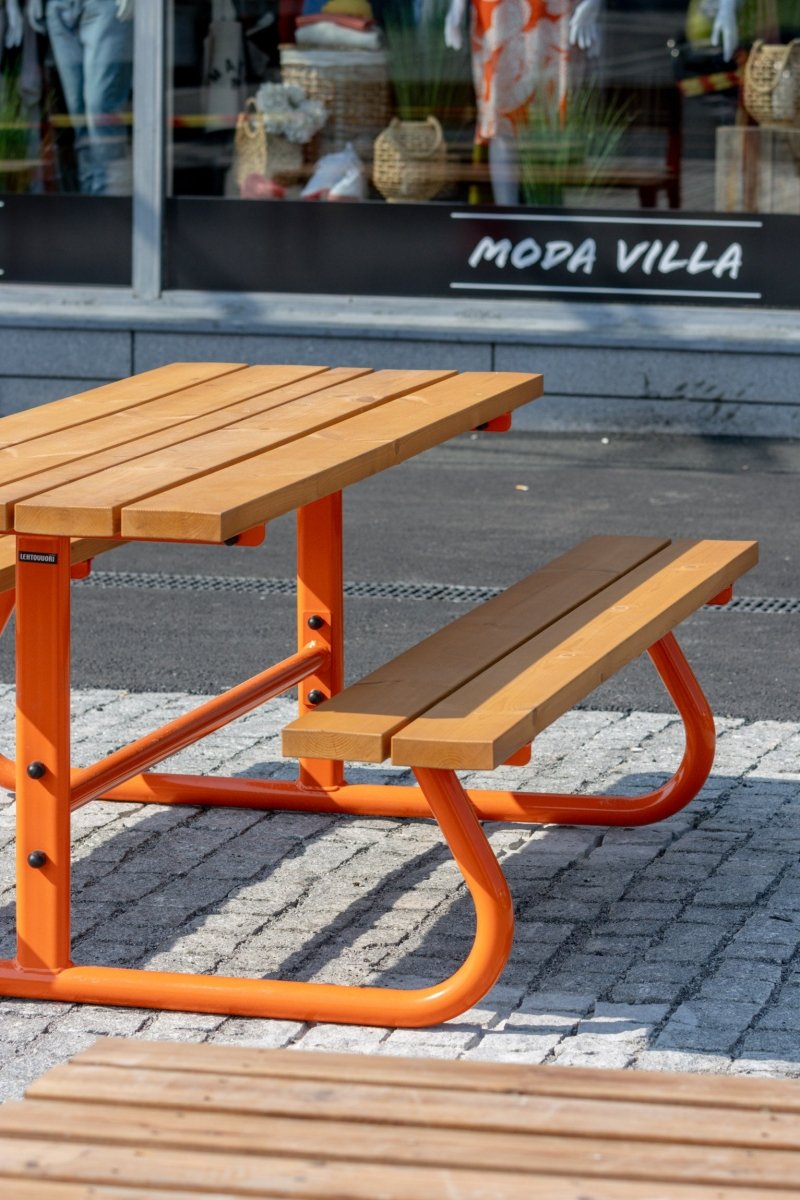 Combi-pöytäpenkki on ajaton klassikko ja kestävä pöytä-penkkiyhdistelmä, joka on suunniteltu erityisesti päiväkoteihin, puistoihin ja leikkipaikoille. Sen vankka teräsrunko valmistetaan ovaalinmuotoisesta rakenneputkesta, joka yhdessä mäntypuisten istuin- ja pöytälautojen kanssa tekee Combista pitkäikäisen ja säänkestävän ratkaisun vaativiin olosuhteisiin. Teräsrunko on sinkkipohja- ja jauhepolttomaalattu, ja puuosat käsitellään myrkyttömällä, vesiohenteisella puunsuojalla, joka takaa turvallisuuden myös lapsille.
