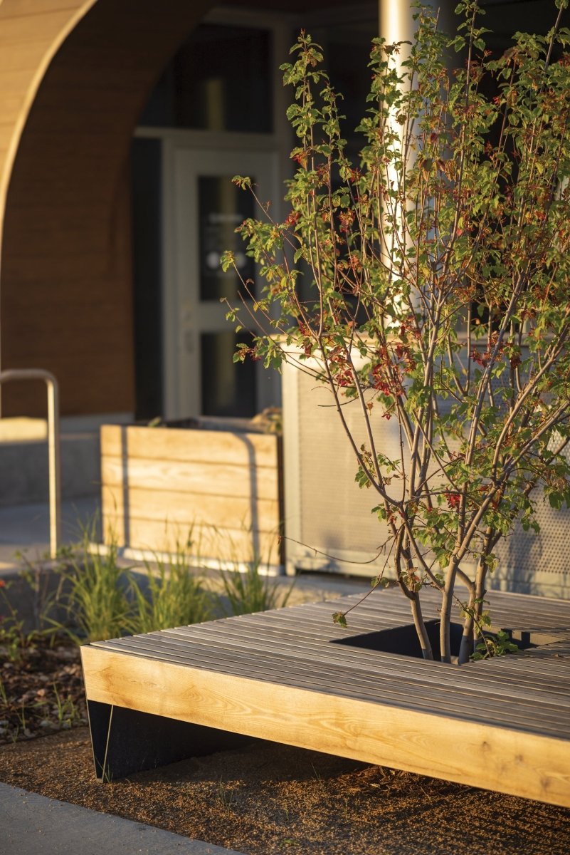 - Innovatiivinen muotoilu: Puuaukko mahdollistaa penkin yhdistämisen viherrakentamiseen luoden viihtyisää ja ympäristöystävällistä kaupunkitilaa.