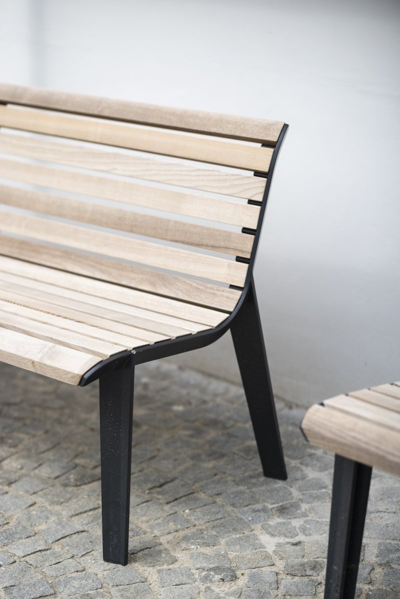 Emau EM151r on kevytlinjainen ja nykyaikainen pihapenkki esimerkiksi puistoihin ja muihin kaupunkitiloihin. Emau-sarjan penkit ottavat inspiraatiota 1960-luvun minimalistisesta arkkitehtuurista. Tässä penkissä se näkyy esimerkiksi kapealinjaisessa ja huomaamattomassa sivuprofiilissa.