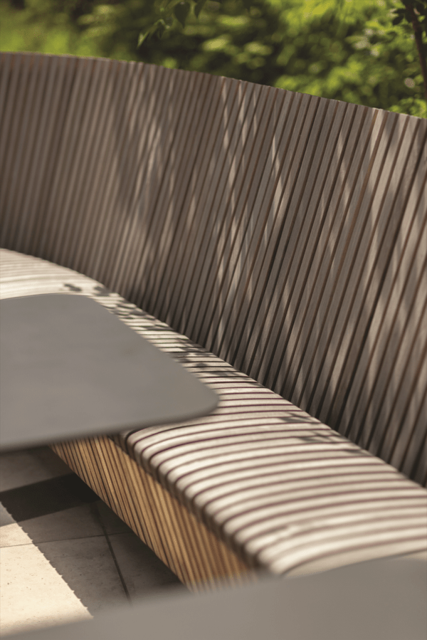 Toiminnallisuus ja estetiikka: Penkki toimii yksittäin tai osana suurempaa Landscape Compact-istuinkokonaisuutta.
