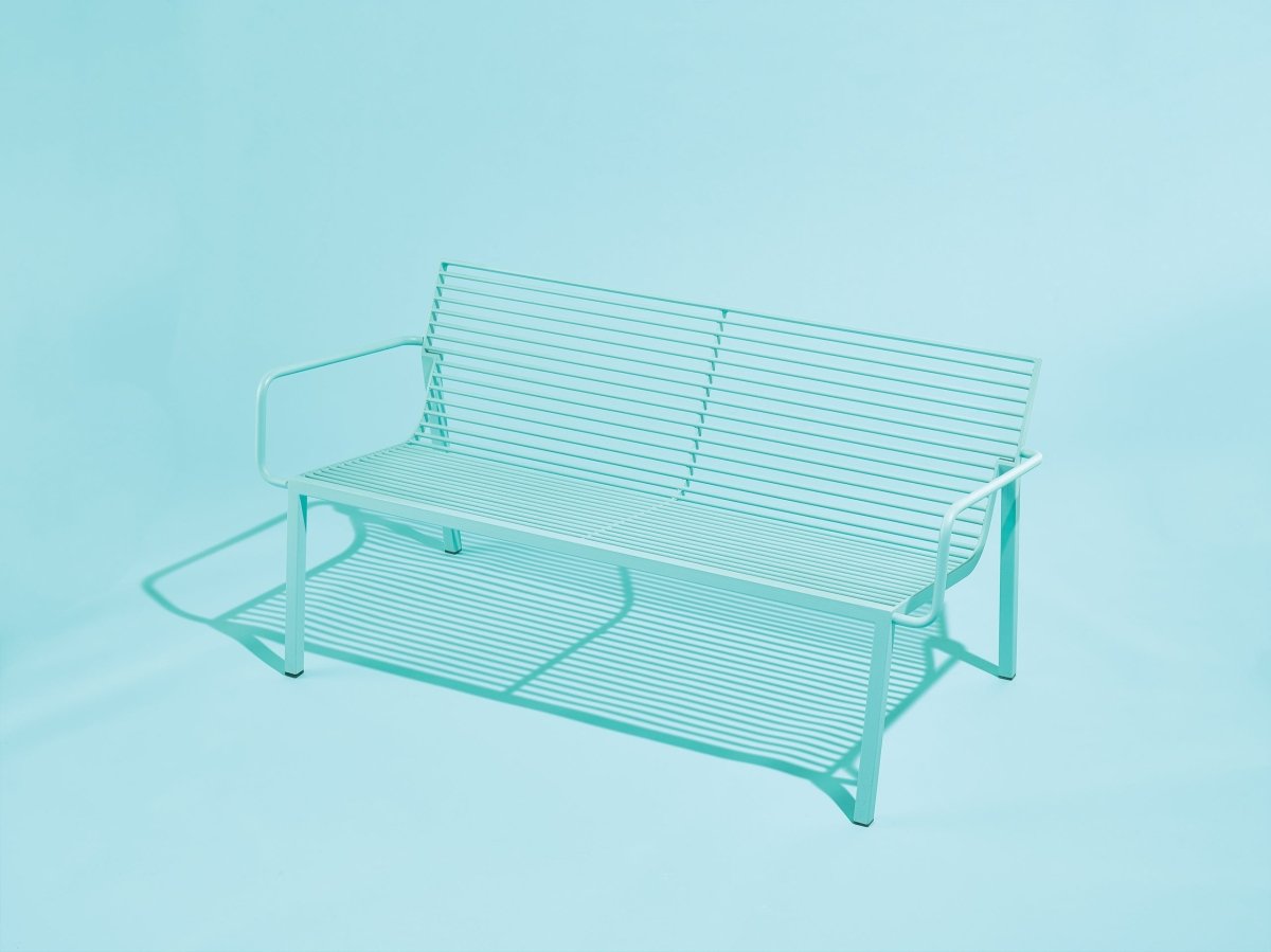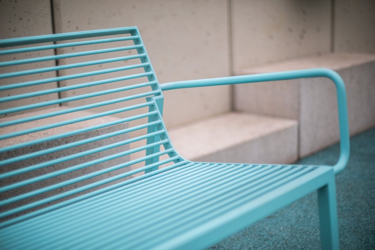 Penkki on valmistettu kokonaan sinkitystä ja jauhemaalatusta teräksestä istuinosan rimoja myöten, joten se kestää säässä kuin säässä. Penkki on vapaasti seisova, mikä tekee sen siirtelystä vaivatonta.