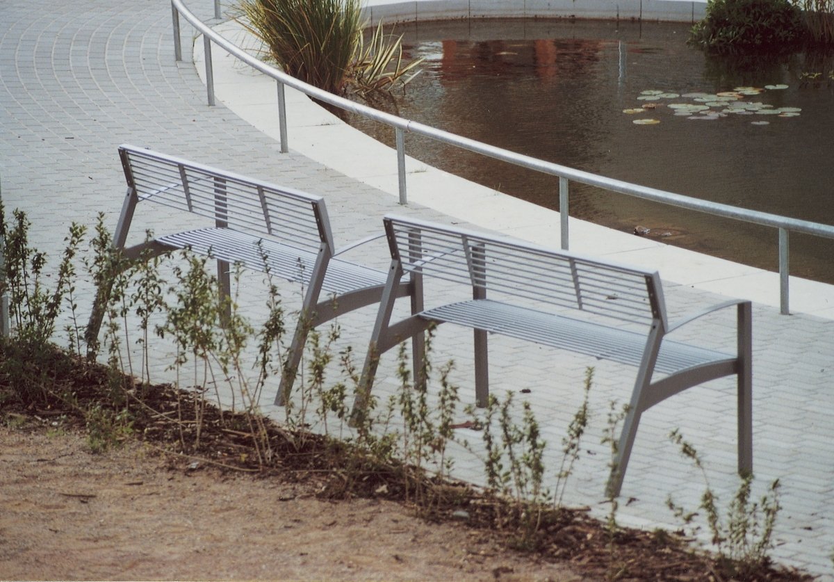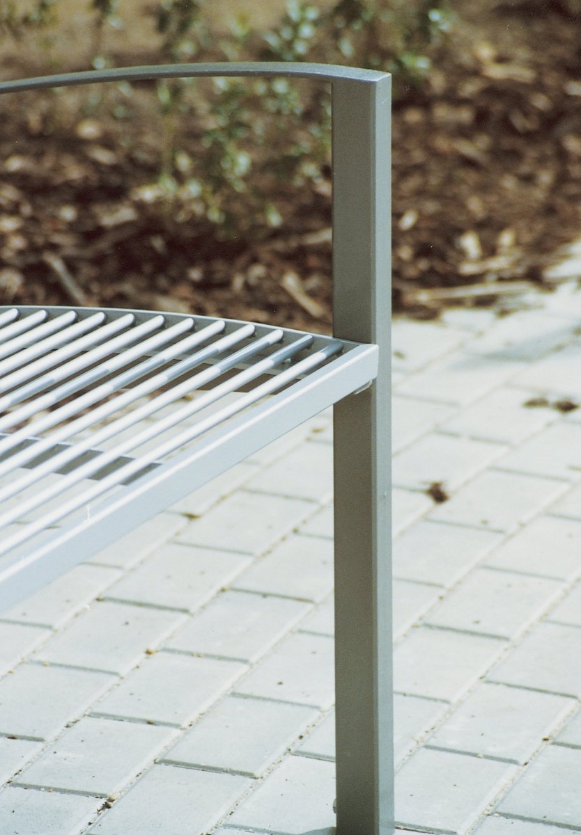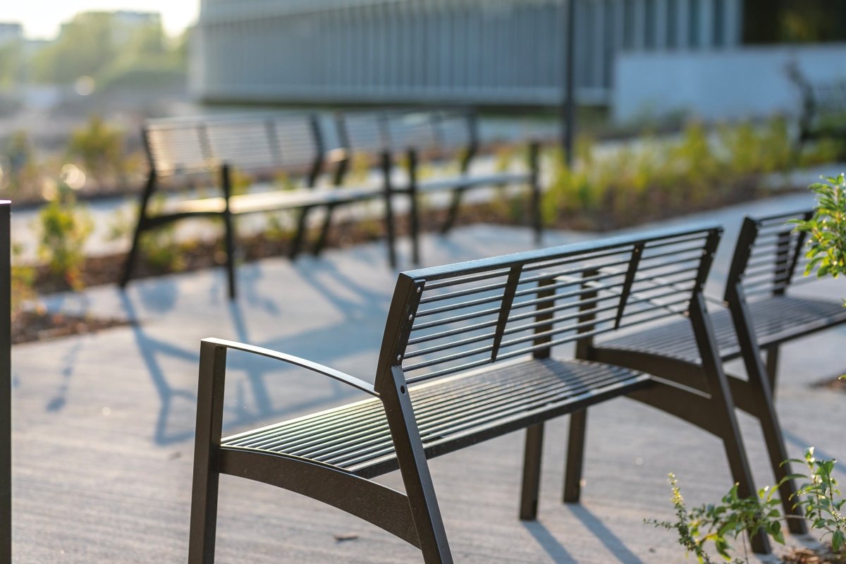 Selkeälinjainen teräspenkki kaupunkitilaan