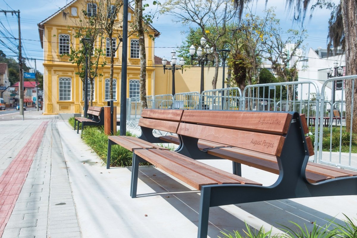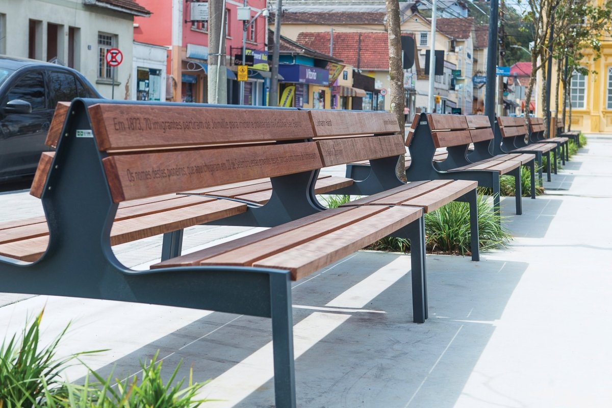 Penkin runko on terästä, joka on sinkitty ja jauhemaalattu pitkäikäisyyden varmistamiseksi. Istuinosat ja selkänojat on tehty FSC-sertifioidusta jatobapuusta, joka on säänkestävää ja patinoituu kauniisti. Pinta-asennus tuo penkille lisävakautta.