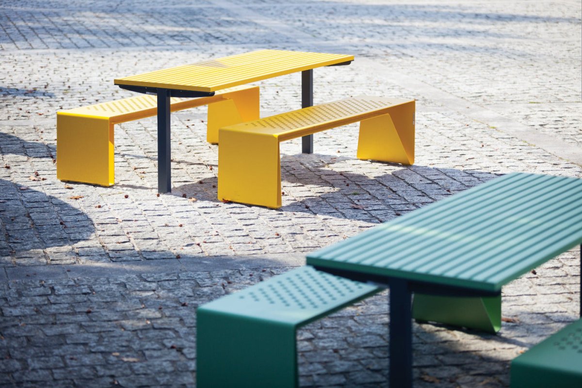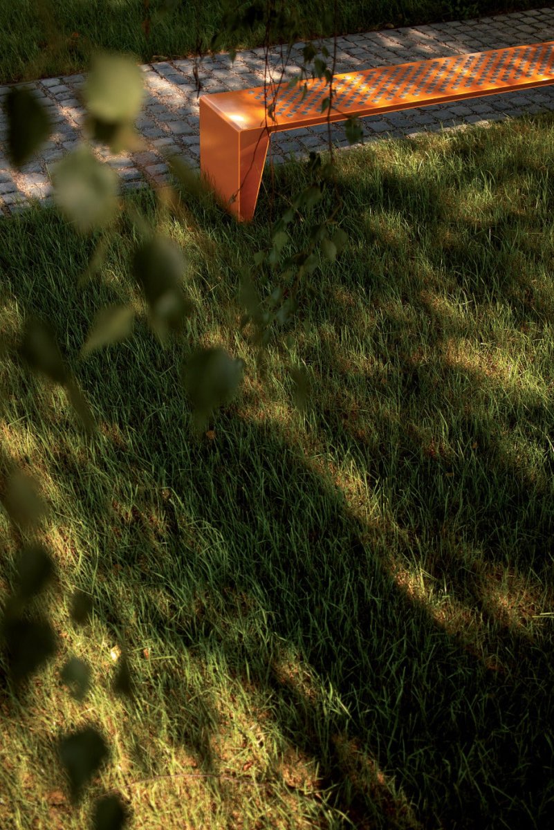 Selkänojaton teräspenkki kaupunkeihin