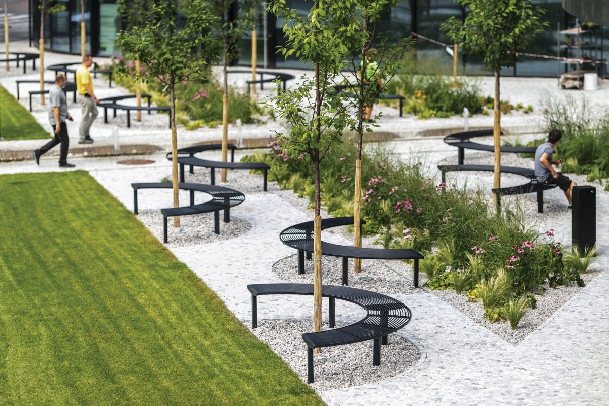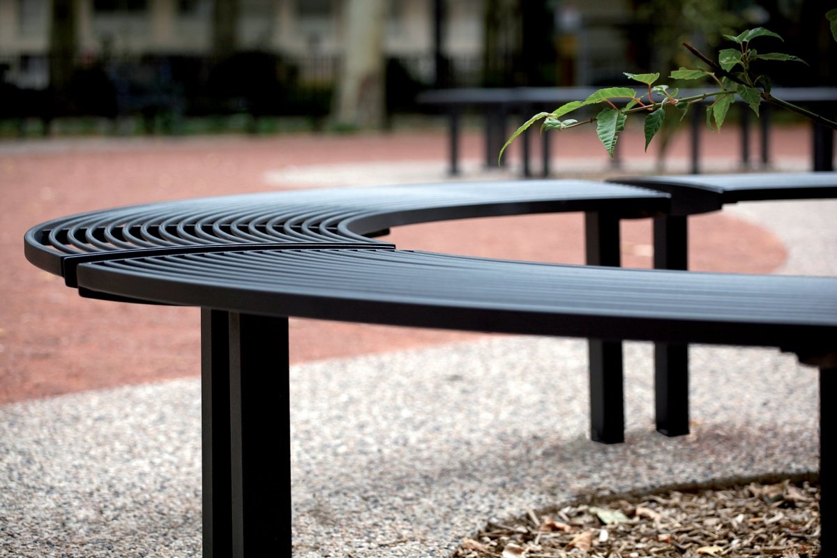 Vera Solo LVS510 – kaareva selkänojaton teräspenkki monipuolisiin kaupunkiympäristöihin