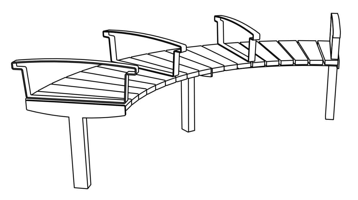 Vera Solo LVS615t – kaareva selkänojaton penkki käsinojilla