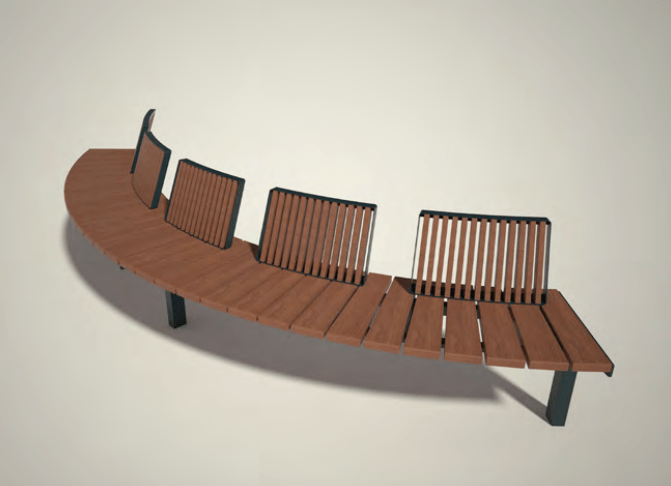 Vera Solo LVS670-a-t on mukava ja yhdisteltävä penkki kaupunkitilaan. Vera Solo -malliston suorista ja kaarevista penkkimoduuleista voidaan muodostaa pidempiä mielikuvituksellisia istuinkokonaisuuksia esimerkiksi puistoihin tai toreille. Tämä penkkimoduuli on kaartuva ja selkänojallinen.