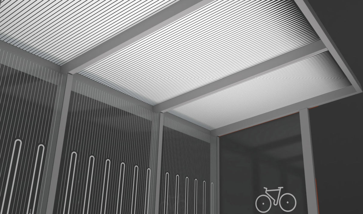 Katos on varustettu karkaistusta lasista valmistetuilla sivu- ja takaseinillä sekä laminoidusta karkaistusta turvalasista valmistetulla katolla. Sinkitty ja jauhemaalattu teräsrunko kestää aikaa ja sään vaihteluita. Runko on saatavilla mmcitén RAL-vakioväreissä.