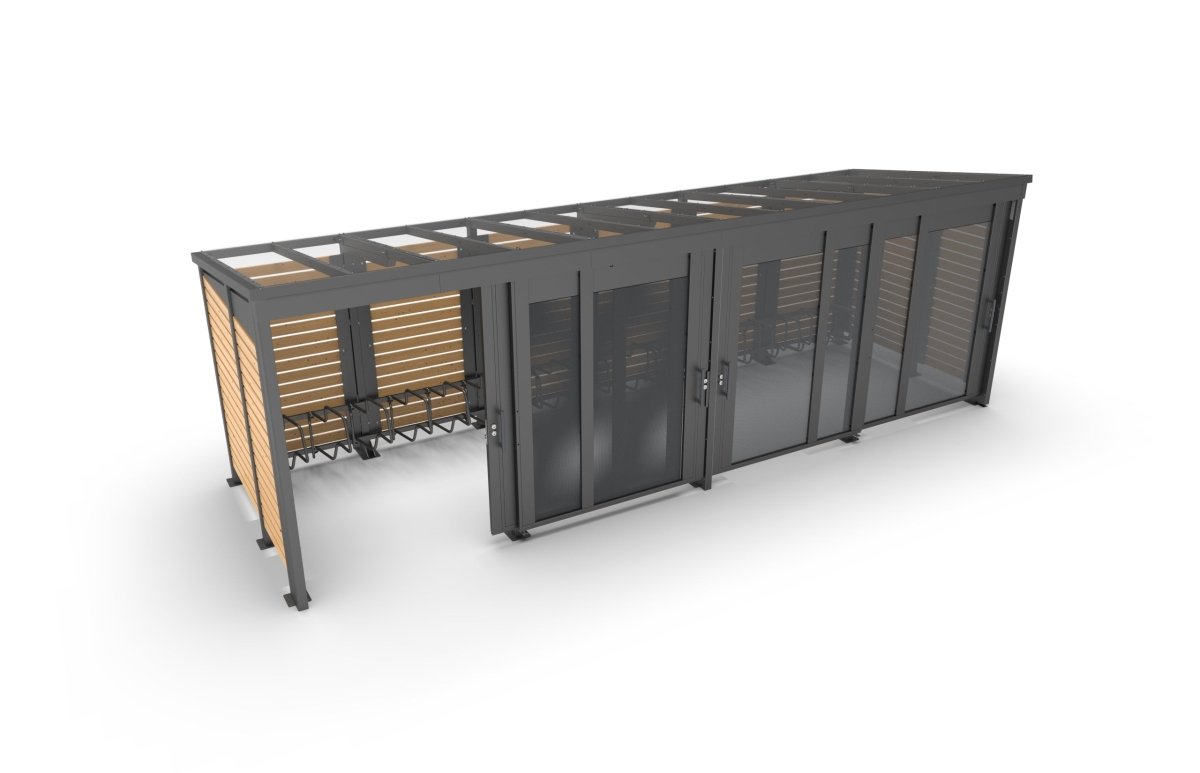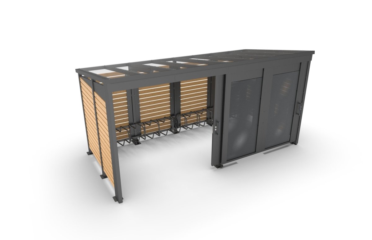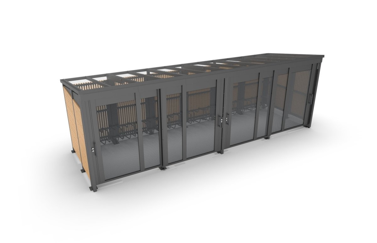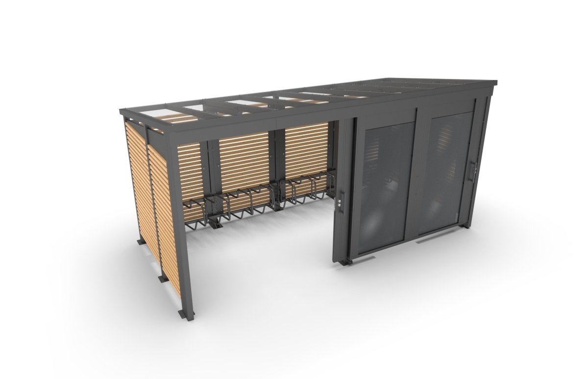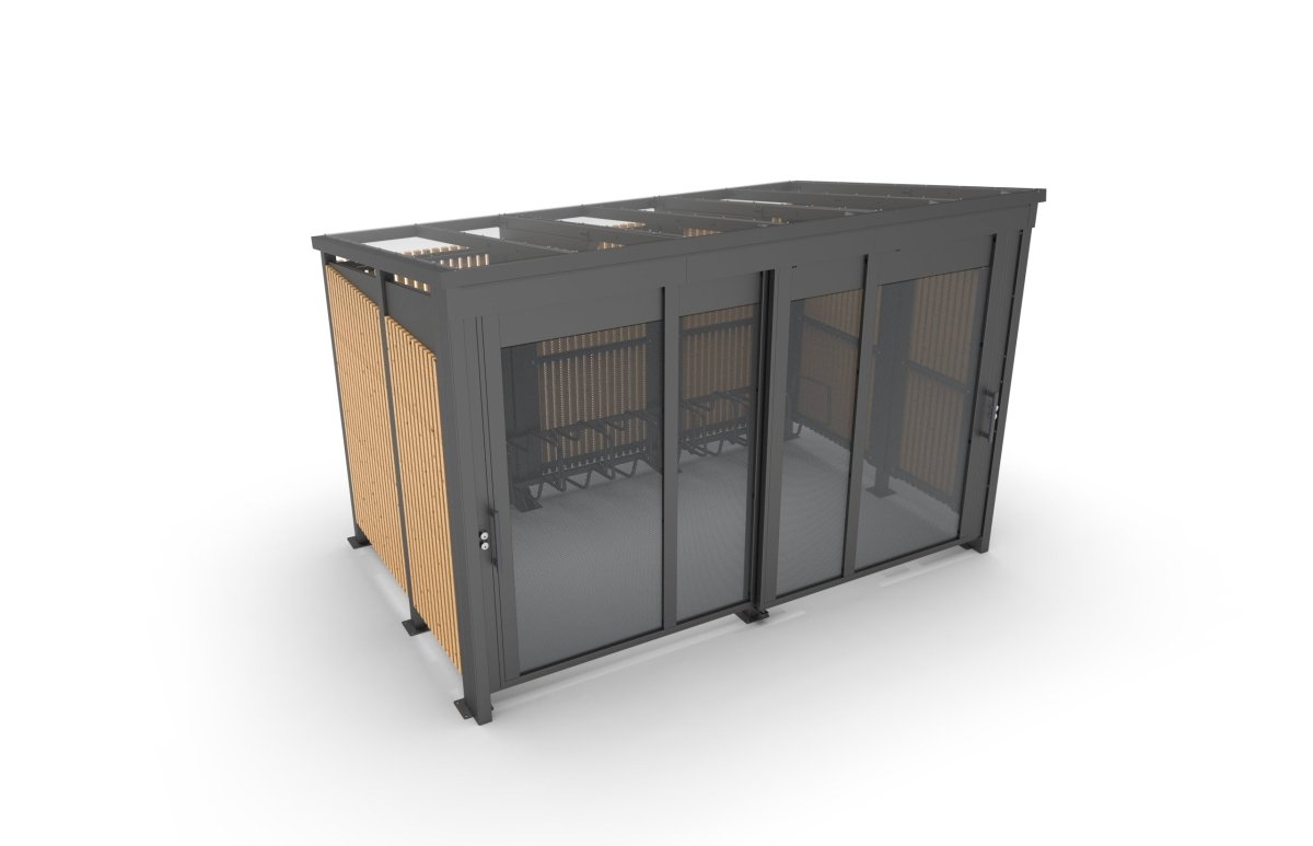 ViVa-pyörätalli on syvyydeltään 2,6 metriä. Sen kestävä teräsrunko ja laadukkaat pinnoitteet takaavat pitkän käyttöiän ja vähäisen huoltotarpeen. Pyörävajan seinäelementit on suunniteltu monipuolisuutta silmällä pitäen; valikoimassa on teräsreikälevy, umpinainen teräslevy ja puurimoitus. Tämän ansiosta voit valita juuri sinun kohteeseesi sopivan tyylin.