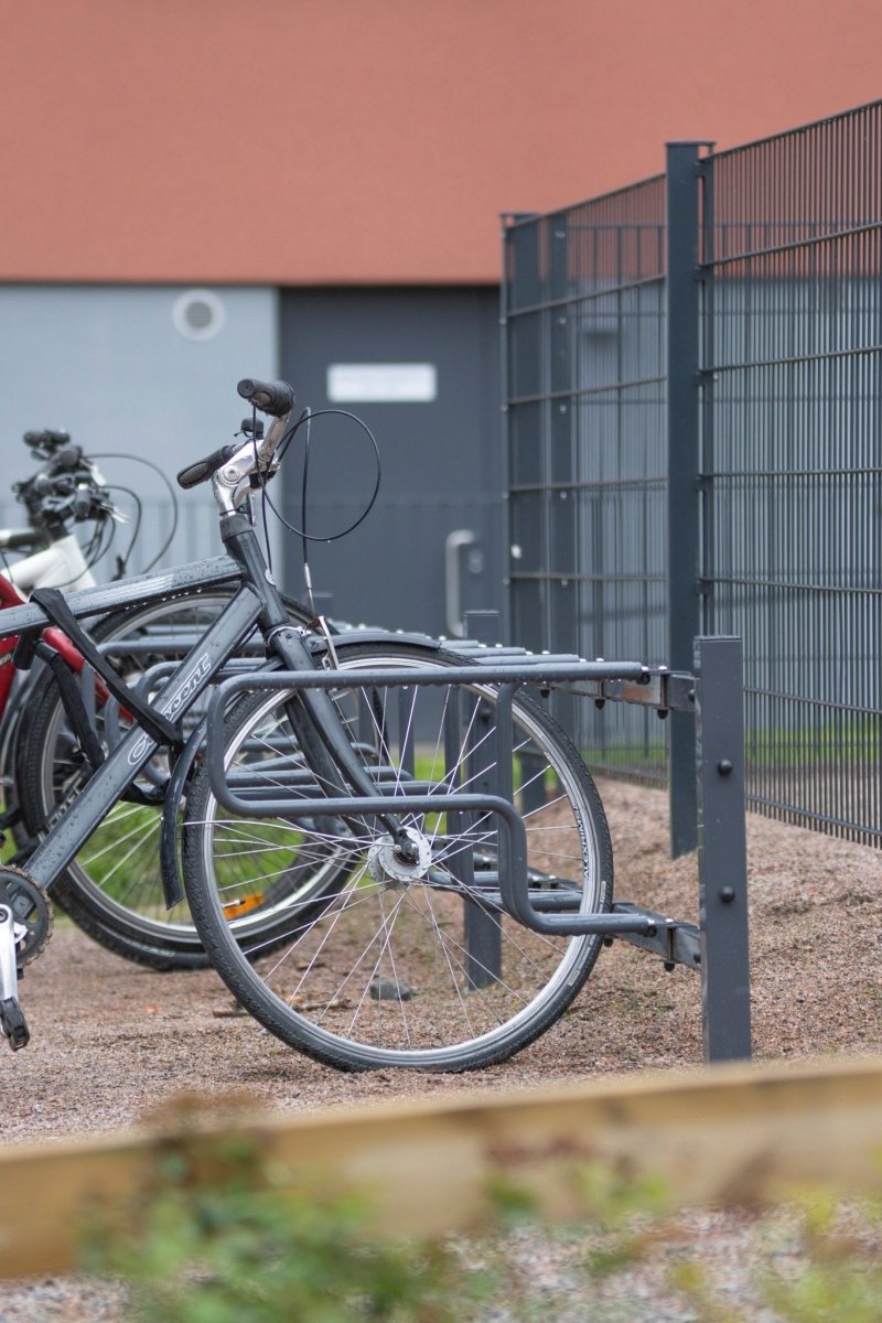 Seinäkiinnitettävä CubiQ Standard tarjoaa kestävän ja pitkäikäisen ratkaisun pyöräpysäköintiin erityisesti ahtaissa tiloissa.