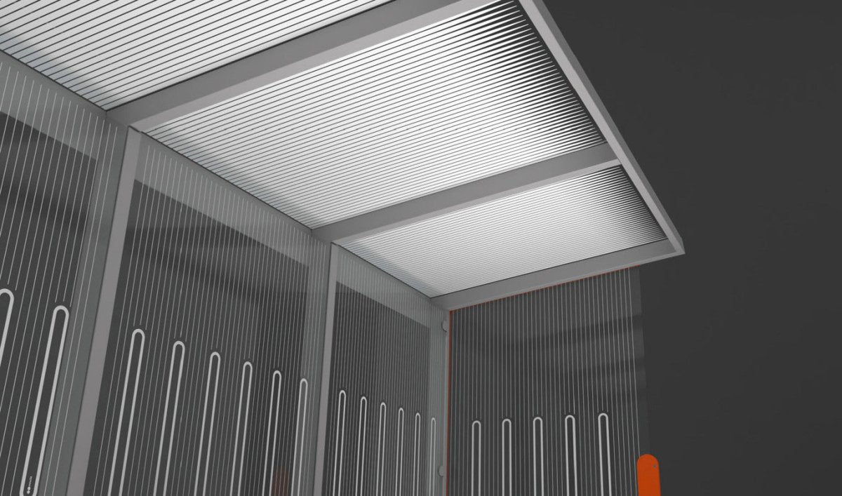 Katoksen runko on erityisen kestävää, sinkittyä ja jauhemaalattua terästä. Katto ja seinät on valmistettu läpinäkyvästä karkaistusta lasista ja penkki tyylikkäästä FSC-sertifioidusta jatobapuusta. Uppoasennus lisää katoksen vakautta monenlaisissa sääolosuhteissa.