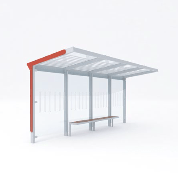 AE400-SS on selkeälinjainen pysäkkikatos kaupunkiympäristöön. Sen sivuseinättömyys palvelee liikenteen solmukohdissa ja keskusta-alueilla, joissa katokselta vaaditaan esteettömyyttä myös kapeissa tiloissa. Katoksen penkki tarjoaa mukavan paikan jalkojen lepuuttamiseen.