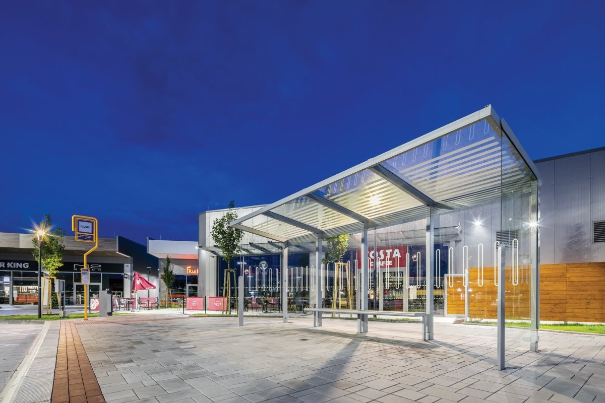 AE410a-SS on selkeälinjainen pysäkkikatos monenlaisiin kaupunkiympäristöihin. Lasiseinät katoksen kolmella sivulla mahdollistavat näköyhteyden ympäristöön mutta lisäävät katoksen suojaisuutta esimerkiksi kaupunkien keskustojen tuulisilla alueilla. Katoksen penkki tarjoaa kulkuvälineiden odottajille mahdollisuuden jalkojen lepuuttamiseen.