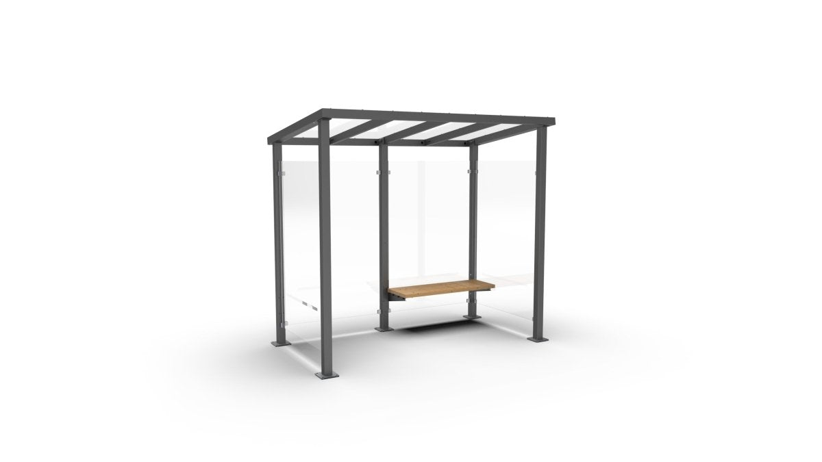 Pysäkkikatos ViVa, 2,7 m, penkillä, etu- ja takatolpat, pinta-asennus