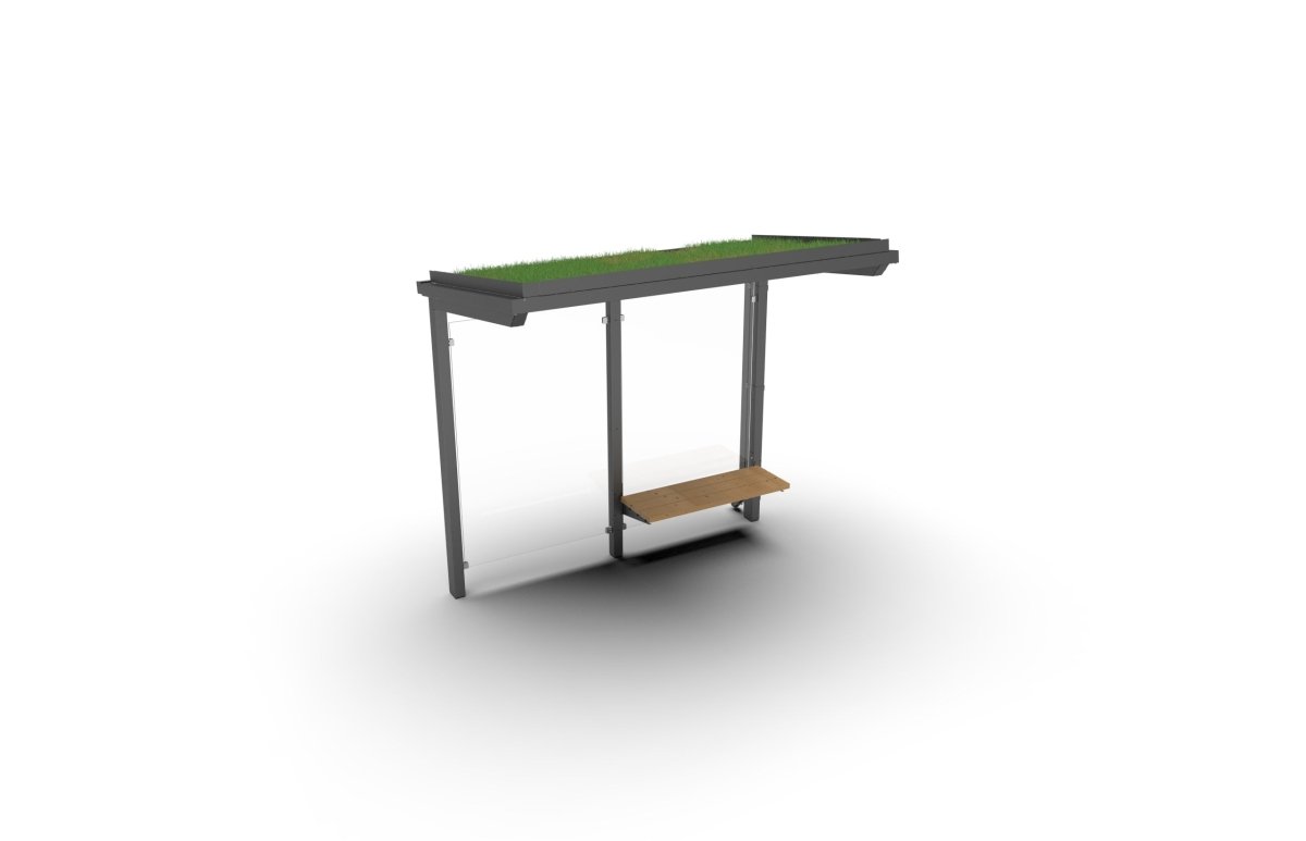 ViVa – 2,7 metrin levyinen taukokatos lasituksilla, penkillä ja viherkatolla