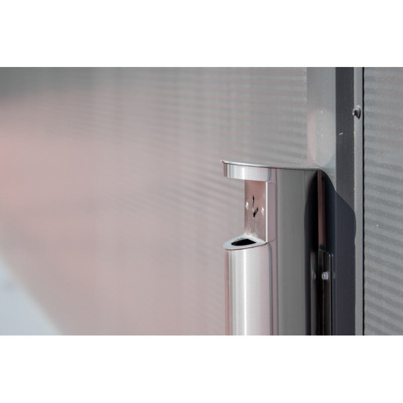 Toimitukseen sisältyy kiinnitystarvikkeet, joiden avulla tuhka-astia voidaan asentaa seinään tai roska-astiaan. Lisäksi pylväskiinnitys on mahdollinen erikseen myytävien pylväskiinnikkeiden avulla.