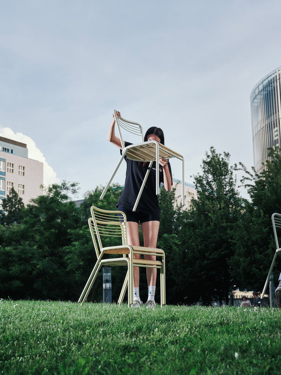 - Pinottava muotoilu – tuolit saa helposti pinottua, mikä helpottaa varastointia ja ylläpitoa ulkotiloissa.