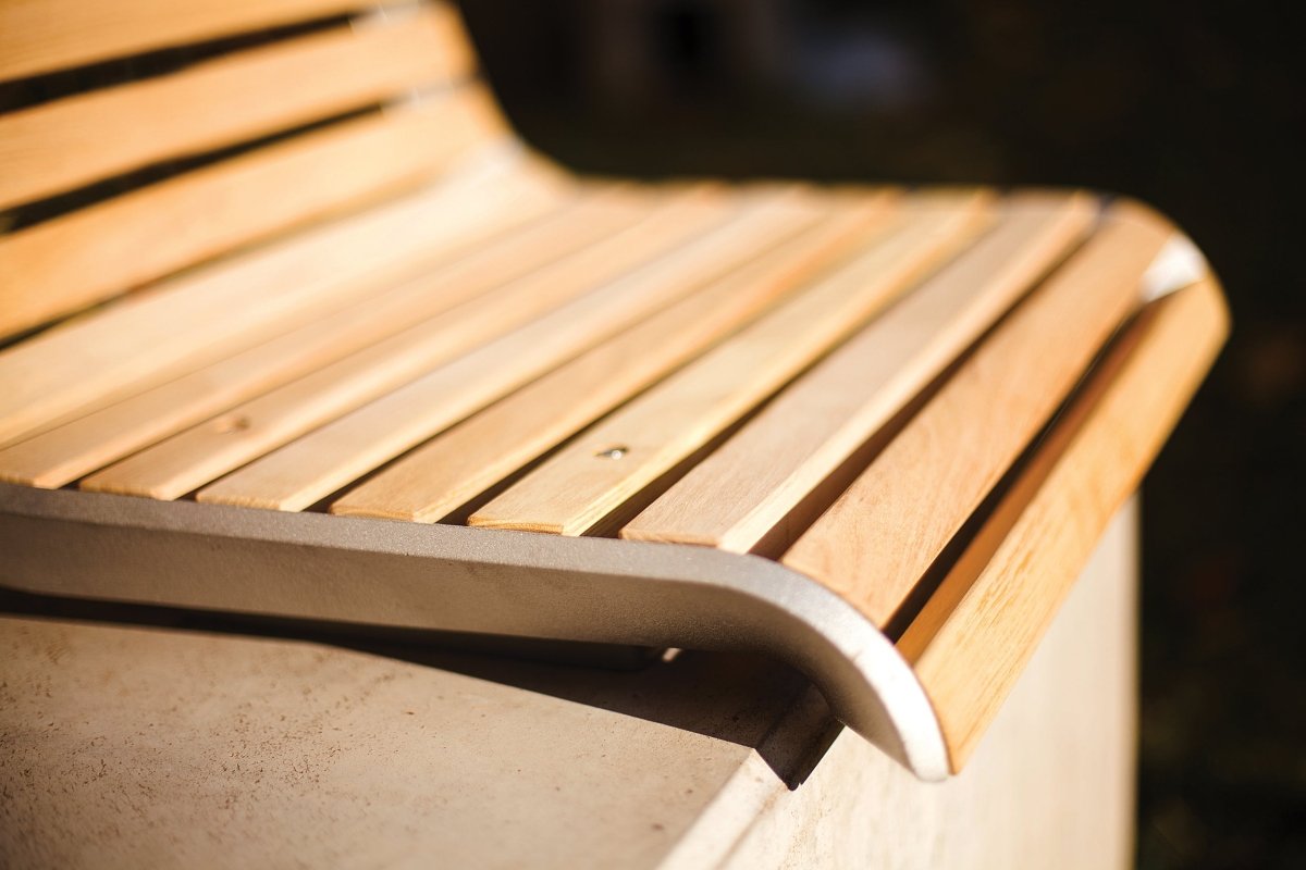 Tuolin sivuosat on valmistettu kierrätetystä ja täysin kierrätettävästä valualumiinista. Rungon tukiosissa käytetään sinkittyä ja jauhemaalattua terästä. Istuimen ja selkänojan puusäleet ovat FSC-sertifioitua jatobaa, joka kestää hyvin vaihtelevia sääolosuhteita ja säilyttää kauniin ulkonäkönsä pitkään. Tuoli kiinnitetään olemassa olevan seinärakenteen päälle tukevasti M10-kierteillä.