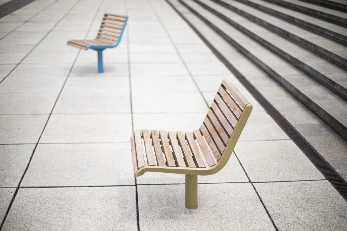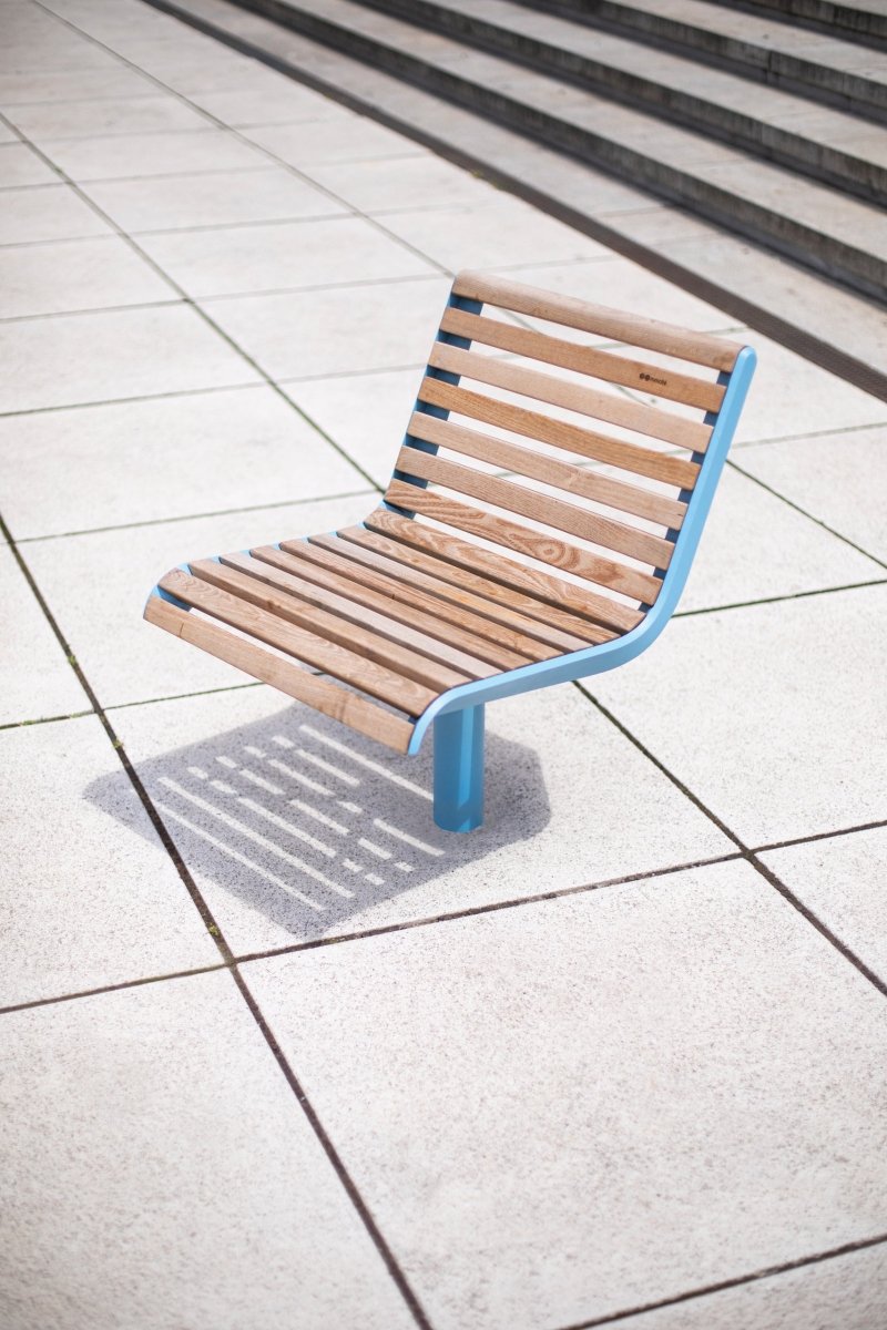 Tuolin runko on valmistettu valualumiinista sekä sinkitystä ja jauhemaalatusta teräksestä. Selkänoja ja istuin ovat FSC-sertifioitua jatobapuuta, joka kestää säätä ja ikääntyy kauniisti. Tuolin keskijalka upotetaan maahan, mikä tarjoaa rakenteelle tukea myös vilkkaissa kohteissa.